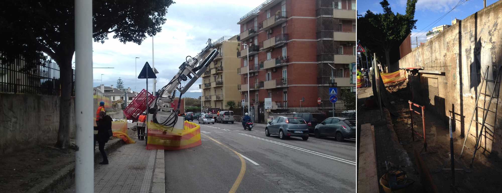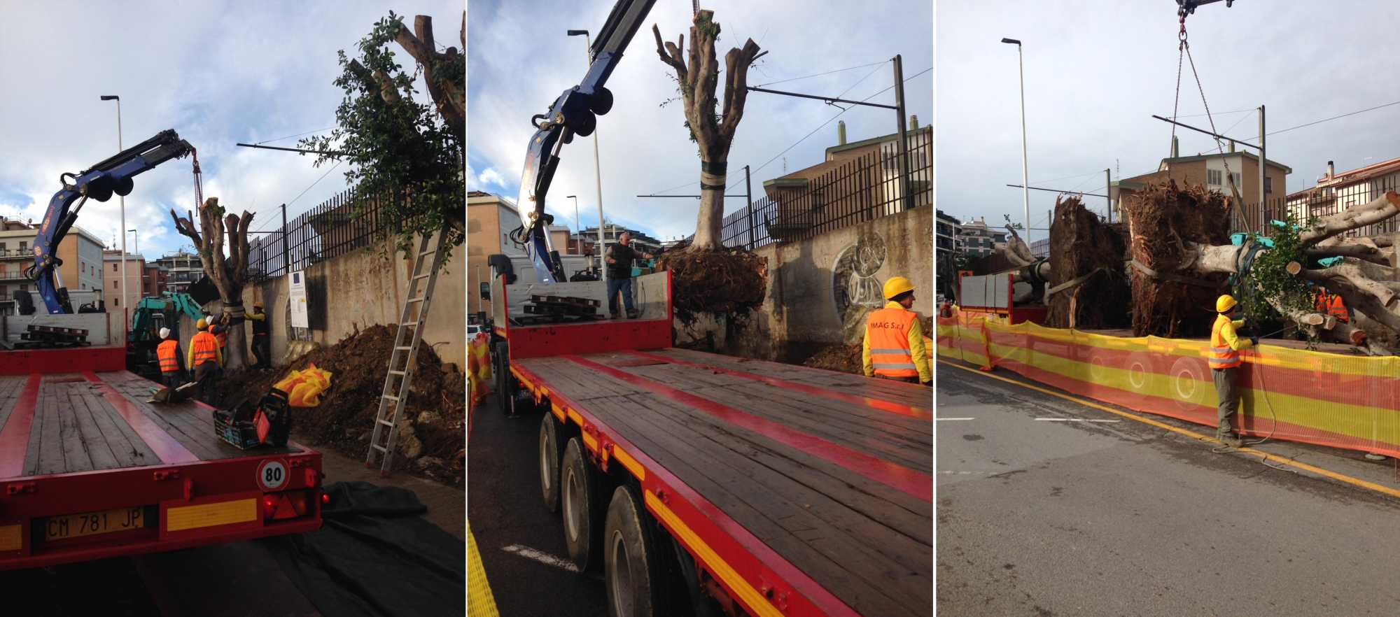 I lavori di ampliamento del rilevato traviario per la posa in opera del secondo binario ai fini del raddoppio della linea della metropolitana di superficie (nei pressi della fermata Gennari) ha comportato l’espianto, il trasferimento e il reimpianto di nove Ficus (alcuni alti una decina di metri) in altra area. La realizzazione di micropali di fondazione, il taglio con fresa diamantata del muro controterra esistente e la edificazione del nuovo muro di sostegno in cemento armato. In un’area di cantiere lunga quasi cento metri.
